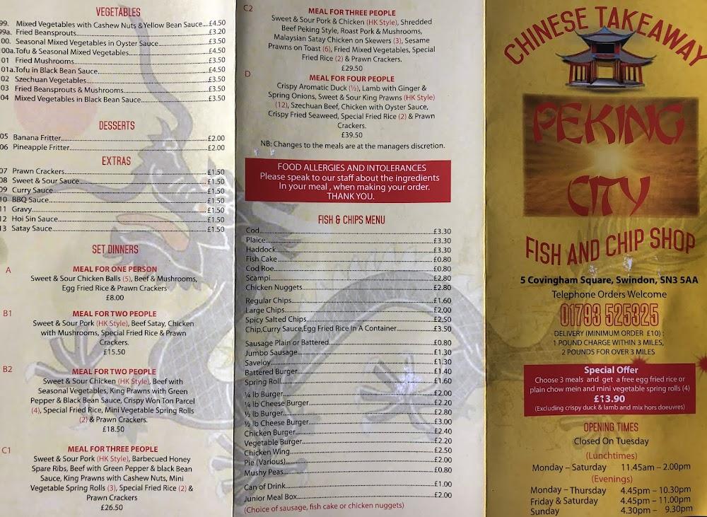 Nestled in the heart of Swindon, Peking City has established itself as a favorite among locals for Chinese takeout and a casual dining experience. The restaurant embraces a welcoming vibe, making it a perfect choice for families and friends gathering for a meal. Open daily, it caters to both takeaway and dine-in customers, providing flexibility for those on the go or looking to enjoy their dinner in a relaxed setting. Peking City also offers late-night food, perfect for night owls craving a delicious bite after hours. With wheelchair-accessible seating and clean facilities, the restaurant ensures everyone can enjoy their meals comfortably. The neighborhood offers a modest charm that contributes to the dining experience, inviting customers to explore the surrounding areas while indulging in delightful flavors. Being a part of the community means that Peking City receives a warm welcome from its patrons, many of whom return time and again for their favorite dishes.